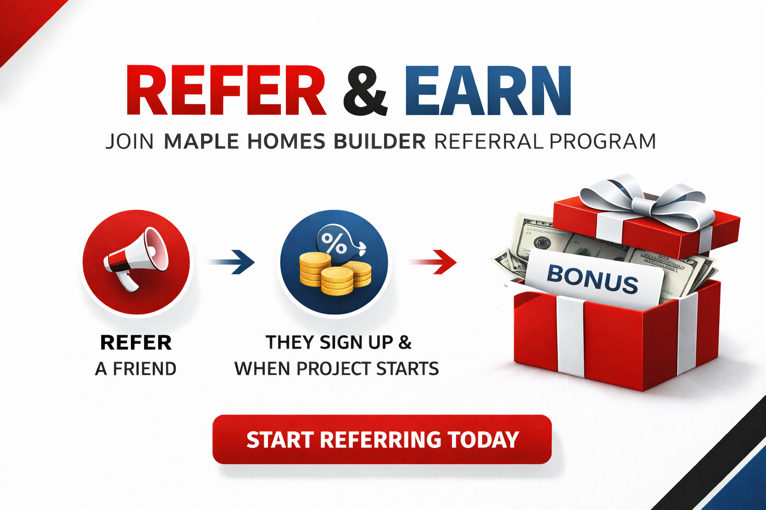 Maple Homes Builder Inc. values the trust and support of our clients, partners, and community. Our Referral Program is designed to reward individuals who refer new customers to us for renovation and construction services.